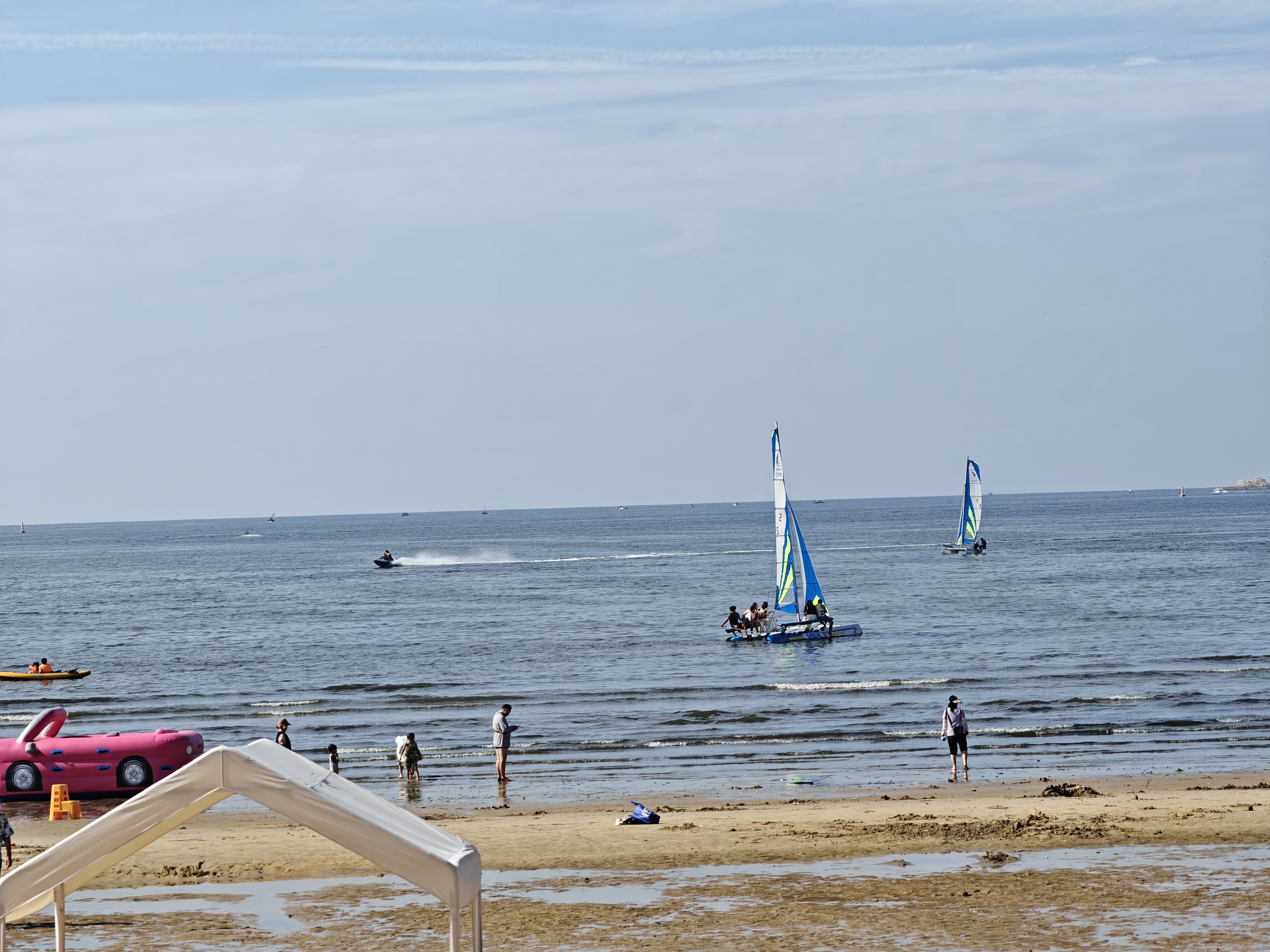 前几天刚从那边回,沙滩上和岸边都是海风吹过来的浒苔,水质明显不如三亚那边,长岛还行很凉快,海鲜也不错