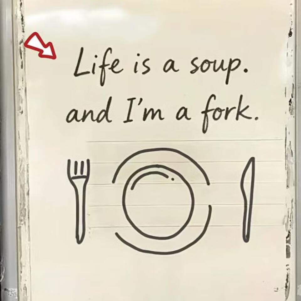 人生一锅汤,偏我是把叉 生如羹汤,吾若叉匙 浮世若汤,吾犹餐叉 人生如羹,我若釜鬵